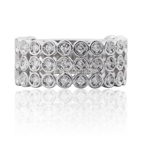 Роскошное широкое бриллиантовое кольцо из белого, красного или желтого золота - на Ваш выбор! Золото 585 пробы, вес - 7.8 грамм для 16.5 размера. Ширина кольца -10 мм. Выглядит легко и подходит для маленьких и средних пальчиков.