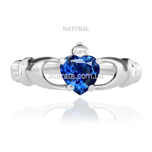 Кладдахское кольцо с сапфиром-сердцем «Gold Claddagh»