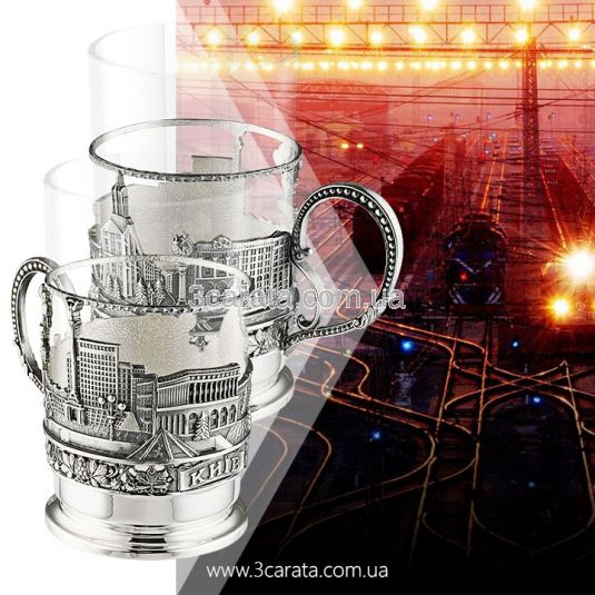 Подстаканник из латуни с оксидированием, имитирующим чернение серебра, оформленный рисунком фрагмента площади Крещатик и надписью "Киев" - великолепный и душевный подарок. Цена за вес 218,71 грамм.
