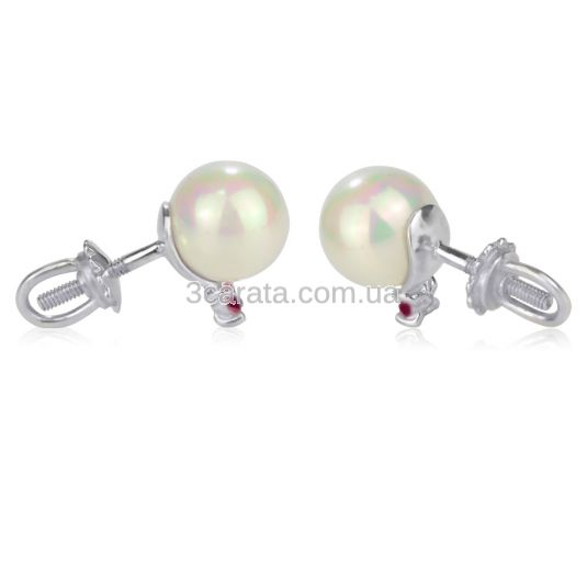 Серьги пусеты с жемчугом и рубином «Креолка»