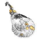 Заварник для чая в виде чайной ложки из серебра с позолотой и изображением морского царя, который несет на плечах красивый парусный корабль. Прекрасным дополнением к такому подарку будет серебряный подстаканник, чашка или ложка, хотя таким заварником вполне можно размешать сахар в чашке. Тонкая работа, выборочная позолота, удобный замочек и исключительная полезность такого заварника делает из этой вещицы великолепную идею для подарка не только морякам, девушкам, ожидающим принца под алыми парусами или коллекционерам, но всем любителям чая не зависимо от возраста и рода занятий. Длина изделия 14,5