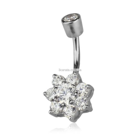 Серьга в пупок с фианитами Swarovski «Belle fleur»