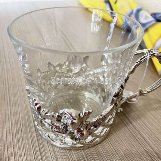 Стеклянная чашка с серебром «Маковое поле»