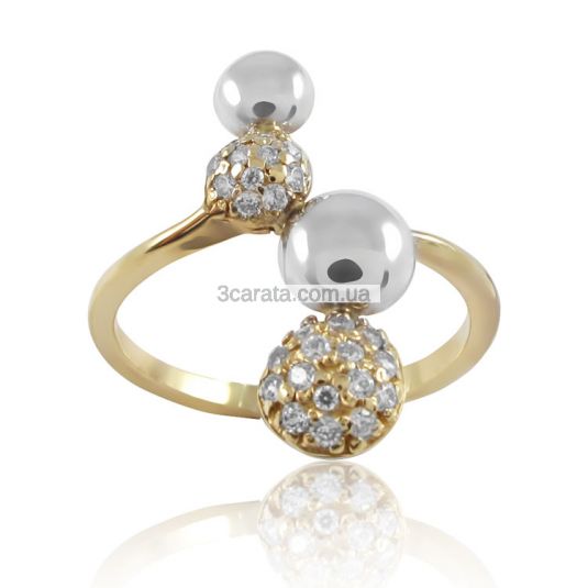 Кольцо в виде 5-ти полусфер различного диаметра, из 2 цветов золота и фианитами. Золото 585 пробы. Длина украшения - 2.5 см. Вес кольцо 2,4 грамма.