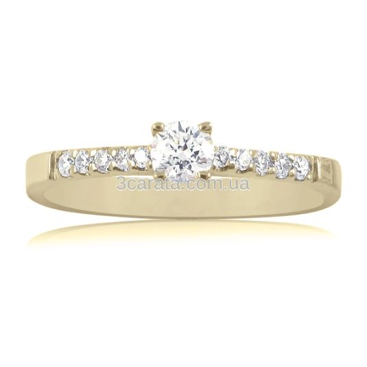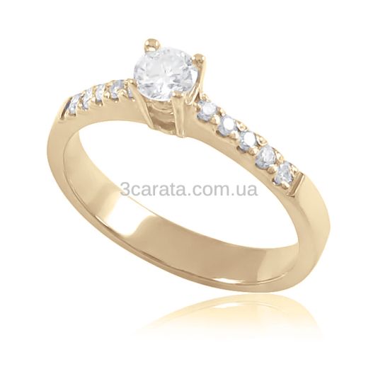 Если вы хотите порадовать свою вторую половинку каким-нибудь эксклюзивным и красивым подарком, то золотое кольцо с бриллиантами как раз то, что вам нужно. Кольца с бриллиантами из белого золота - такое украшение станет достойным руки вашего любимого человека. Кольцо представляет собой очень нежную композицию – тонкий ободок с большим центральным камнем, от которого по обе стороны расположены 10 бриллиантов. Смотрится такая вещичка на пальце очень нежно, бриллианты неповторимо мерцают при любом освещении. Характеристики вставок: 1 шт. - 3/3, 0,16 Ct (3.5 мм); 6 шт. - 3/4, 0,08 Ct; 4 шт. - 3/4, 0,06 Ct.