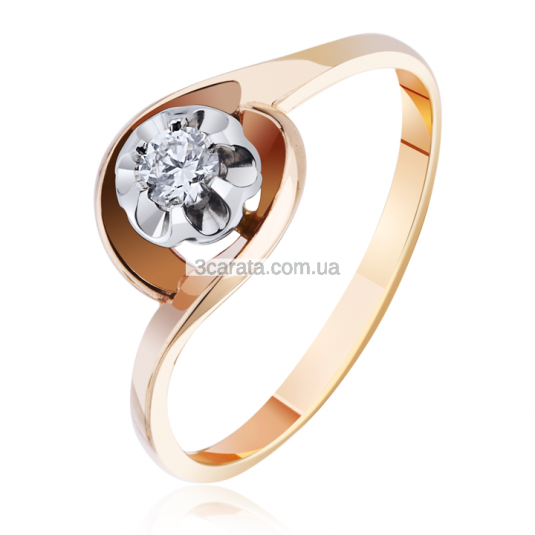 Колечко из красного и белого золота, увенчанное бриллиантом 3 мм. Золото 585 пробы. Вес изделия - 1,87 грамм.