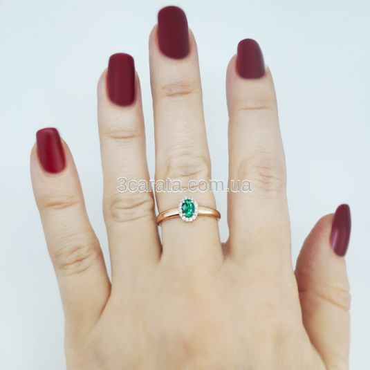 Кольцо из золота украшено сияющим аппетитным изумрудом и ореолом бриллиантов. Вес 2 грамма. Золото 585 пробы. Идеально для помолвки!