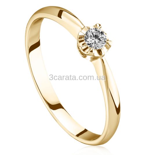 Бриллиант в этом колечке закреплен красивым кастом, который зрительно увеличивает камень, поэтому это будет лучший выбор для того, чтобы сделать предложение руки и сердца. Золото 585 пробы. Цена указана за вес 1,7 грамма.