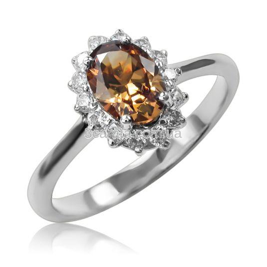 Недорогой перстень из золота 585 пробы, с цирконием коньячного цвета, добавит тепла и красок, а искрящиеся блики белого циркония оздадут атмосферу праздника. Цена за вес 2,93 грамма.