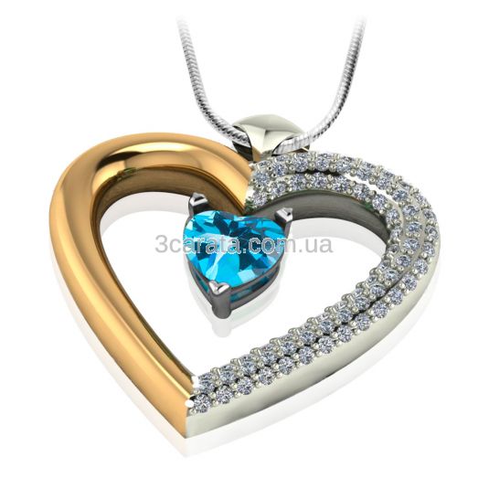 Золотой кулон-сердце с синим топазом «Loving heart»