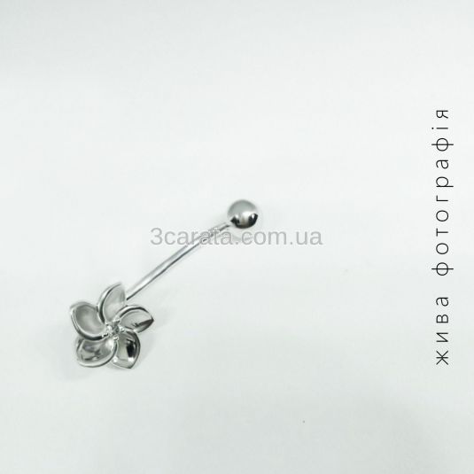 Купить золотую серьгу в пупок в виде цветка с небольшим природным бриллиантом 0,02 Ct - это значит подарить себе хорошее солнечное настроение в любую погоду. Цена за вес 2 грамм.