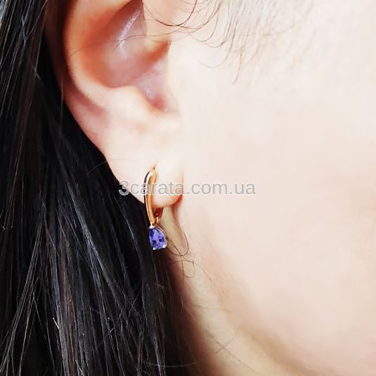 Изящные сережки из золота 585 пробы с натуральным танзанитом, ограненным в форме груши, с надежной английской застежкой - замечательный подарок девушке ко дню рождения, выпускному и любому другому значимому празднику. Цена за вес изделия 2,5 грамма.
