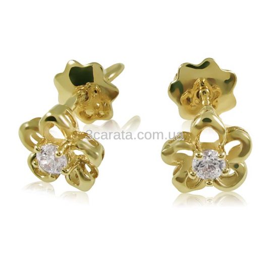 Все девушки любят подарки, все девушки любят цветы. Поэтому такой подарок станет любимым украшением Вашей половинки! Золотые цветочки не увянут никогда, а, значит, любовь в сердце избранницы сохранится навеки. Серьги могут быть выполнены в белом, желтом или красном золоте. Характеристики вставок: куб.цирконий, диаметр 3 мм.