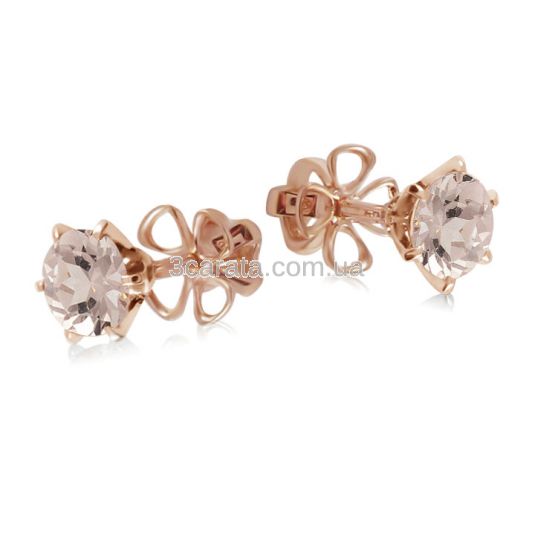 Золотые серьги пусеты с морганитом «Век любви бесконечен»