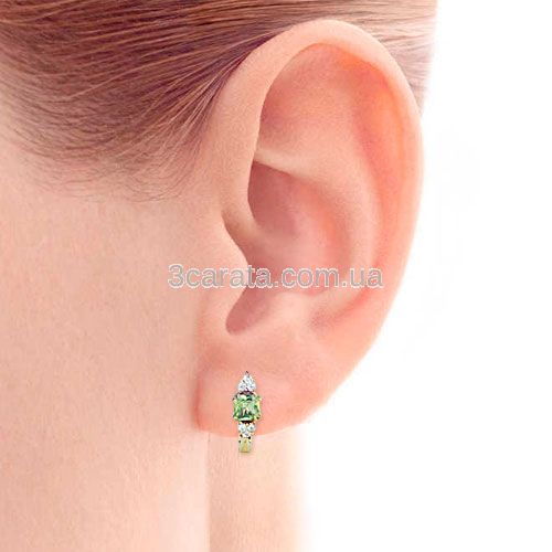 Золотые серьги с хризолитом «Дороги любви 2»