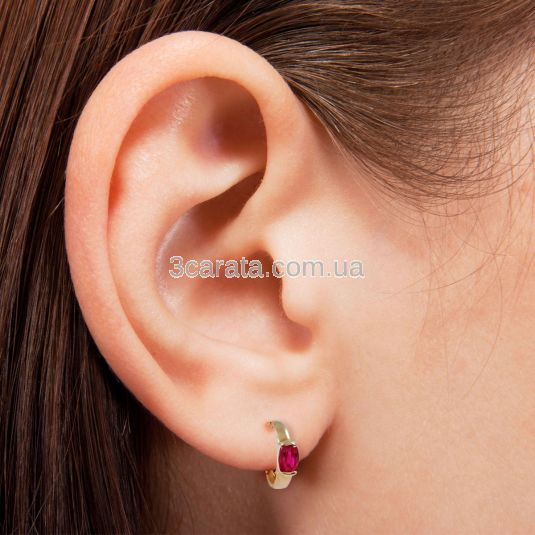 Великолепные золотые серёжки с ярко-розовым рубином, хитом этого сезона, сверкающими, как звезды на ночном бархате неба придутся по вкусу моднице и подойдут как под строгий офисный костюм, так и под вечернее или коктейльное платье. Подарите себе красивое украшение, ведь Вы этого достойны! Характеристики вставок: рубин - 2 шт., вес - 0,53 Ct., цвет/чистота - 3/3. Внутренний диаметр 7 мм, серьги рассчитаны на маленькое ухо.