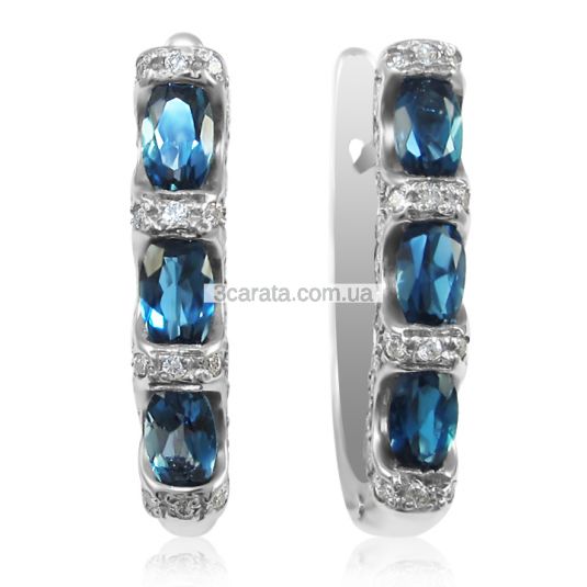 Роскошные, красивые, завораживающие серьги с синим топазом Лондон / Свисс и куб.цирконием. Золото 585 пробы. Вес изделия - 5,27 грамм.
