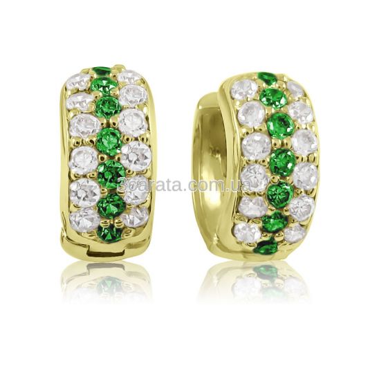 Свежесть белого или цветного циркония потрясёт своими переливами в серьгах колечках с застежкой конго из золота 585 пробы. Вес изделия – 4,3 грамма.