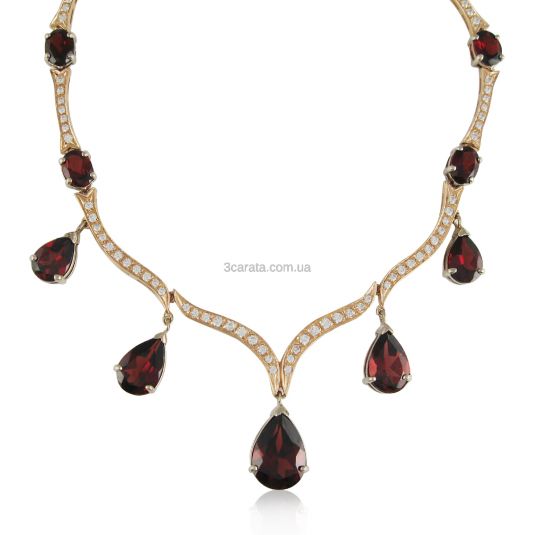 Шикарне жіноче золоте кольє «Гранатовий рай»