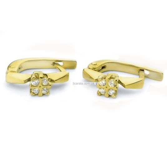 Привабливі і акуратні золоті сережки із діамантами загальною вагою 0,18 Ct, для вишуканої дівчини. Золото 585 проби. Ціна за вагу виробу - 2,79 грама.