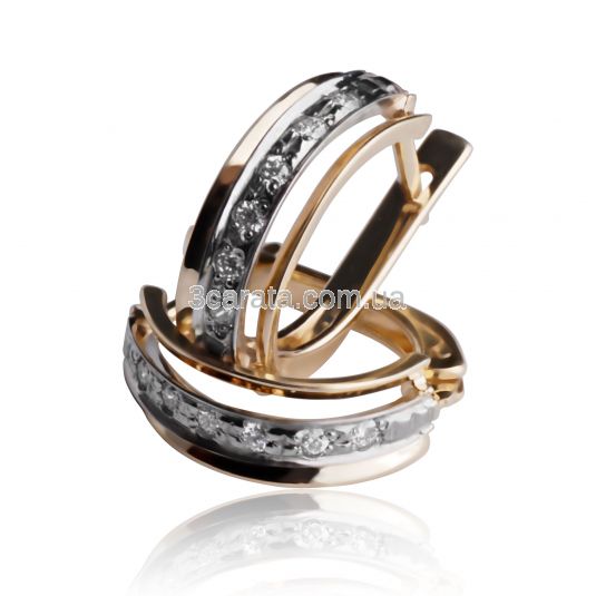 Стильні сережки з червоного і білого золота 585 проб з доріжкою із сліпучих діамантів. Ви так само можете замовити ці сережки у білому або жовтому золоті. Ціна за вагу 3,35 грам.