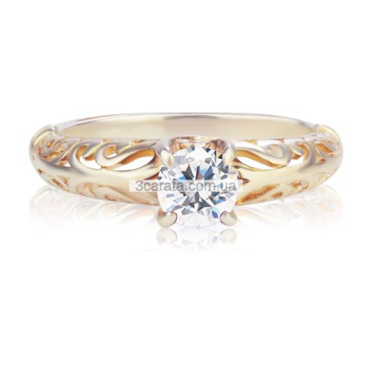 Ідеальний кристал над ажурною гладдю золотого персня можна порівняти з інтригуючим жіночим поглядом, загадковість якого підкреслює тонка вуаль. Стримана романтика вантажного персня - саме та родзинка, яка додасть образу жінки яскравою витонченості та теплоти. Кільце гармонійно поєднується з будь-яким стилем одягу, якщо воно підібрано зі смаком. Золоті сережки з таким же малюнком - ще один крок до досконалості. P> Характеристики вставок: куб.цирконій Сваровскі.