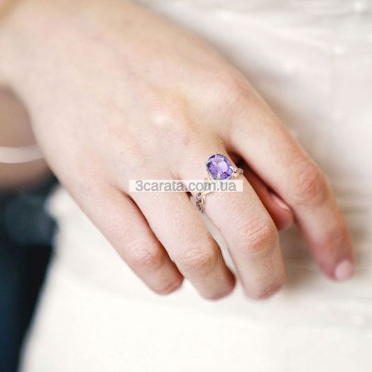 Ідеальний подарунок коханій дівчині, якщо Ви нарешті вирішили зізнатися їй у своїх почуттях - колечко з двох видів золота з дрібними фіанітами і яскравим каменем пристрасті! Колечко з оригінальним дизайном буде щодня радувати свою щасливу власницю блиском золота і каменів. Ви можете замовити таке ж кільце з топазом, цитрином, хризолітом або аметистом. Так само в комплект можливо придбати сережки "Сердечка" і кулон. Вставки: аметист - 1 Ct, овал 8х6 мм.