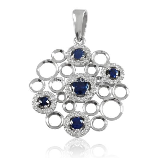 Навіє натхнення на найнестримніші і найромантичніші почуття кулон зі вставками сапфірів і фіанітами. Занурьте свою кохану в величне натхнення розкоші і елегантності! Адже немає нічого прекраснішого, ніж бачити щасливі очі коханої, що світяться від захвату! Характеристики вставок: фіаніти, синтетичні сапфіри, загальною вагою 0.74 карати 3/3. У гарнітур можна підібрати сережки.