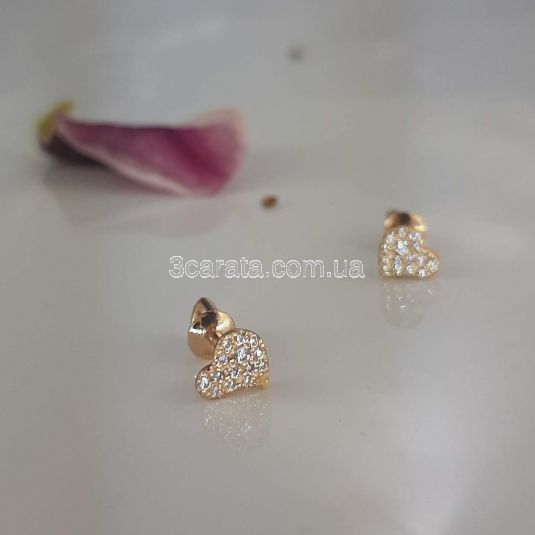 Маленькі сережки гвоздики з діамантами «Золоті сердечка»