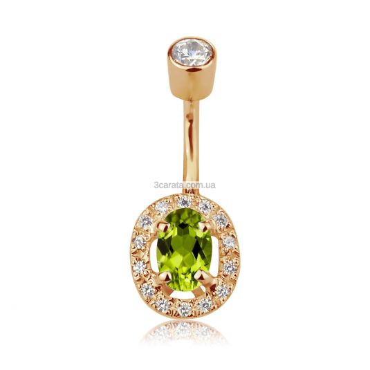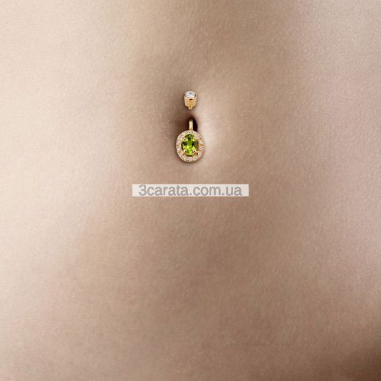 Золотий пірсинг в пупок з хризолітом і фіанітами «Twinkle»