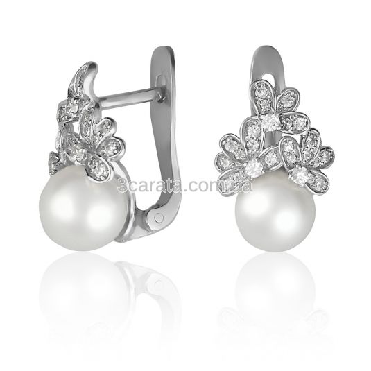 Характеристики вставок: культивовані перли, діаманти загальною вагою 0,38 карат, 7-8 мм. Можлива зміна кольору на рожевий або золотистий.