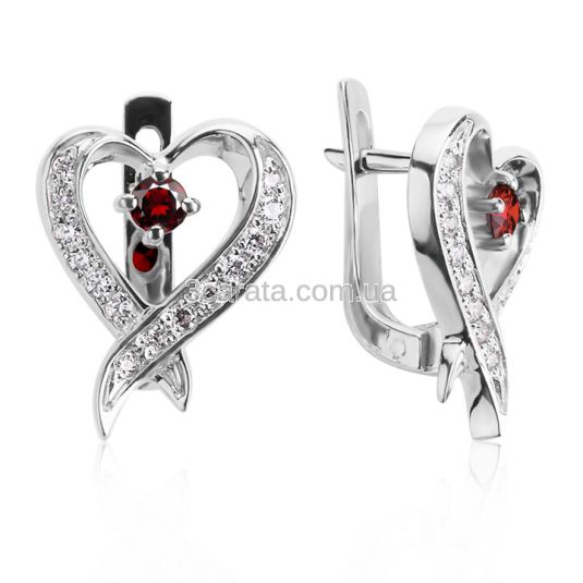 Сережки з невеликими гранатами «Мелодія серця»