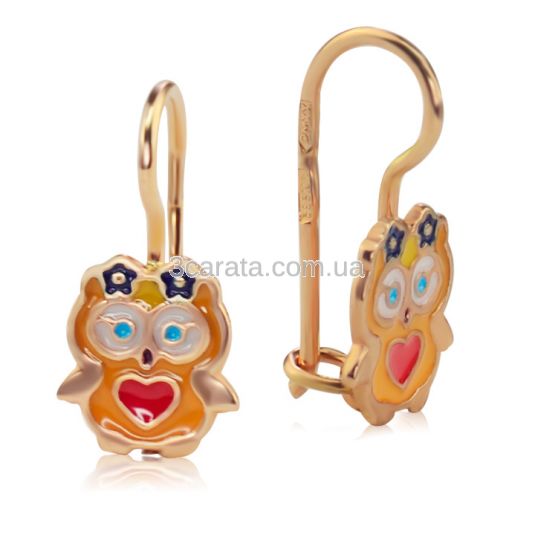 Сережки золоті з кольоровою емаллю для дівчинки «Сови»