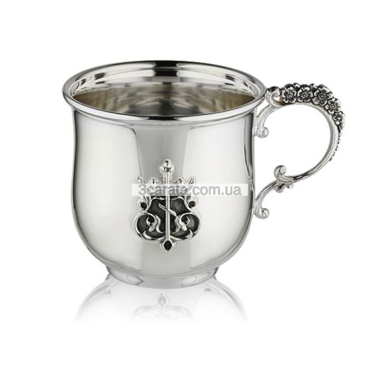 Срібна дитяча кружка «Процветший хрест» з оксидуванням