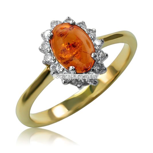 Золота каблучка кабошон з бурштином «Ноктюрн»