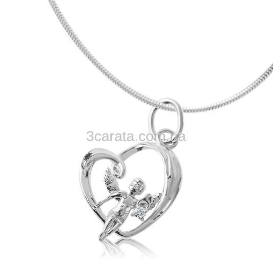 Золота подвіска з діамантом «Янгол й серце»