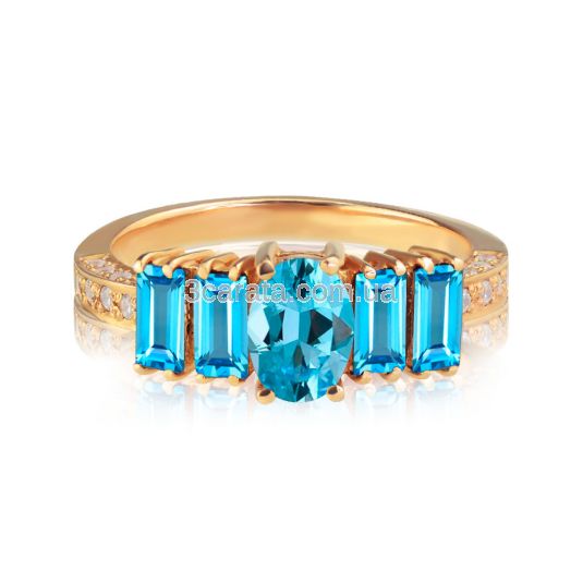 Золота каблучка з топазами огранування багет «Aqua Topaz»