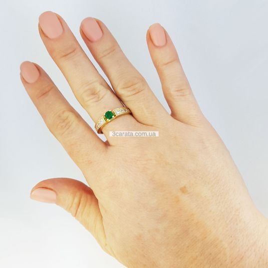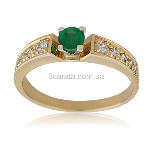 Золота каблучка на заручини з смарагдом «Lovesong»