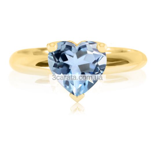 Золота каблучка з аквамарином огранування серце «Loving heart»