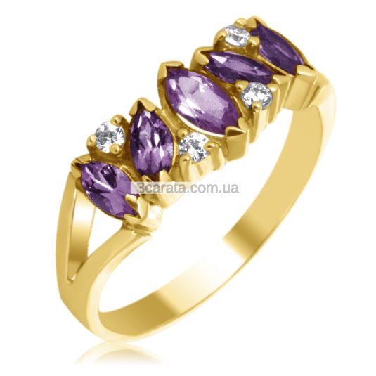 У цьому золотому кільці гармонія дизайну з'єдналася з красою каменів. Доповнені сяючими фіанітами сваровськи аметисти повністю розкривають глибину свого кольору. Це чудова прикраса, яка поєднує в собі елегантність і експресивність, пристрасть і радість життя, яке пронизане чуттєвістю і любов'ю. Таке колечко здатне розтопити серце будь-якої дівчини!