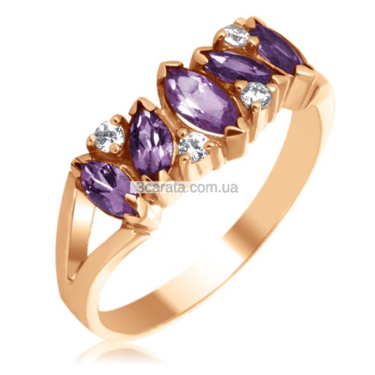 Характеристики вставок: куб.цірконій, аметисти 5 шт загальною вагою 1 карат (6 × 3 × 2 мм).