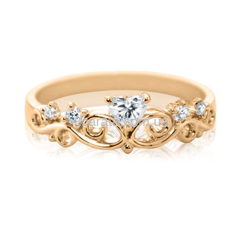 Золота заручальна каблучка з цирконієм «Корона - Серце»