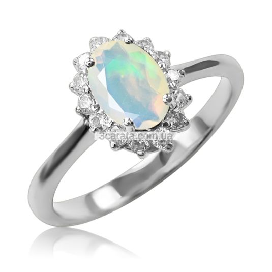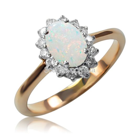 Перстень з золота 585 проби, в якому красивий натуральний опал світиться в пелюстках з фіанітів, додасть тепла і фарб, а іскристі відблиски створять атмосферу свята. Ціна за вагу 2,93 грама.