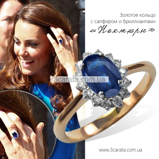 Золоте кольцо з сапфіром і діамантами «Ноктюрн»