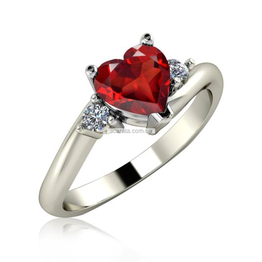 Каблучка серце з гранатом і діамантами «Loving U»