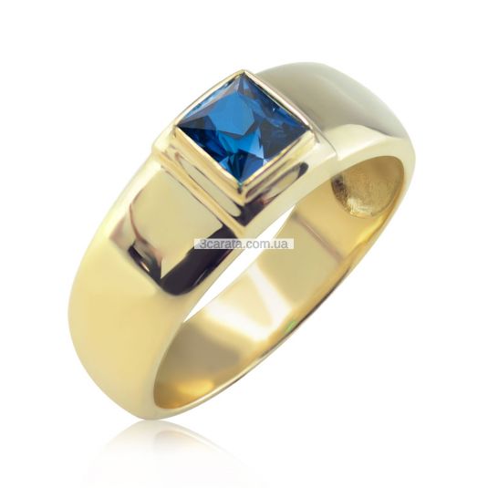 Золота чоловіча печатка з сапфіром «Хранитель»