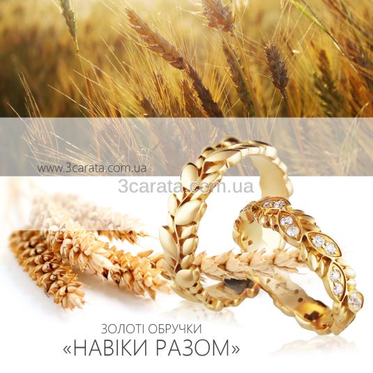 Орнамент "Колосок" - символізує родючість і достаток, плідність сімейного союзу. З давніх-давен золоті колоски в слов'янській культурі служили символом і уособлювали справжні сімейні цінності - непорушну спільність і зв'язок. Пшеничне колосся займало особливе місце і в житті великої Коко Шанель. У своїй квартирі на рю Камбон вона завжди тримала букет пшениці, який вважала щасливим талісманом. Можливо виготовлення кільця як в білому, жовтому, так і в червоному (традиційному) золоті.