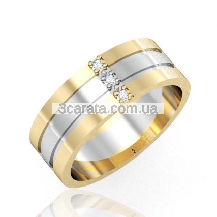 Чудова обручка з комбінованого золота - перш за все символ Вашої любові і відданості, закріпить Ваш союз з елегантністю і шармом. Дорогоцінна прикраса гідно буде блищати усе ваше спільне щасливе життя! Можуть бути різні варіанти комбінування черговості кольорів золота. Вставки: діамант, 3 штуки, вагою - 0.04 ct, характеристики - 3/3.