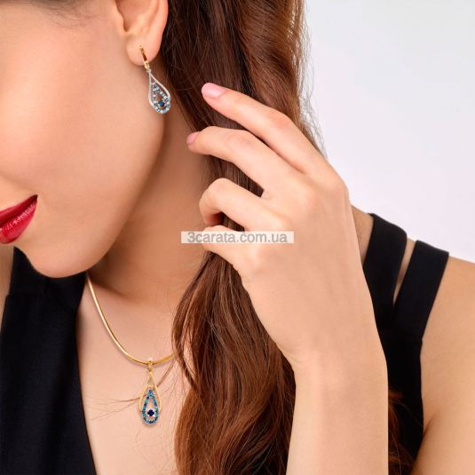 Золотий гарнітур з сапфірами і топазами «Крапля»