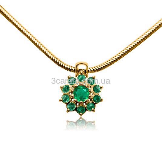 Золотий кулон-квітка з смарагдами «Сніжинка»